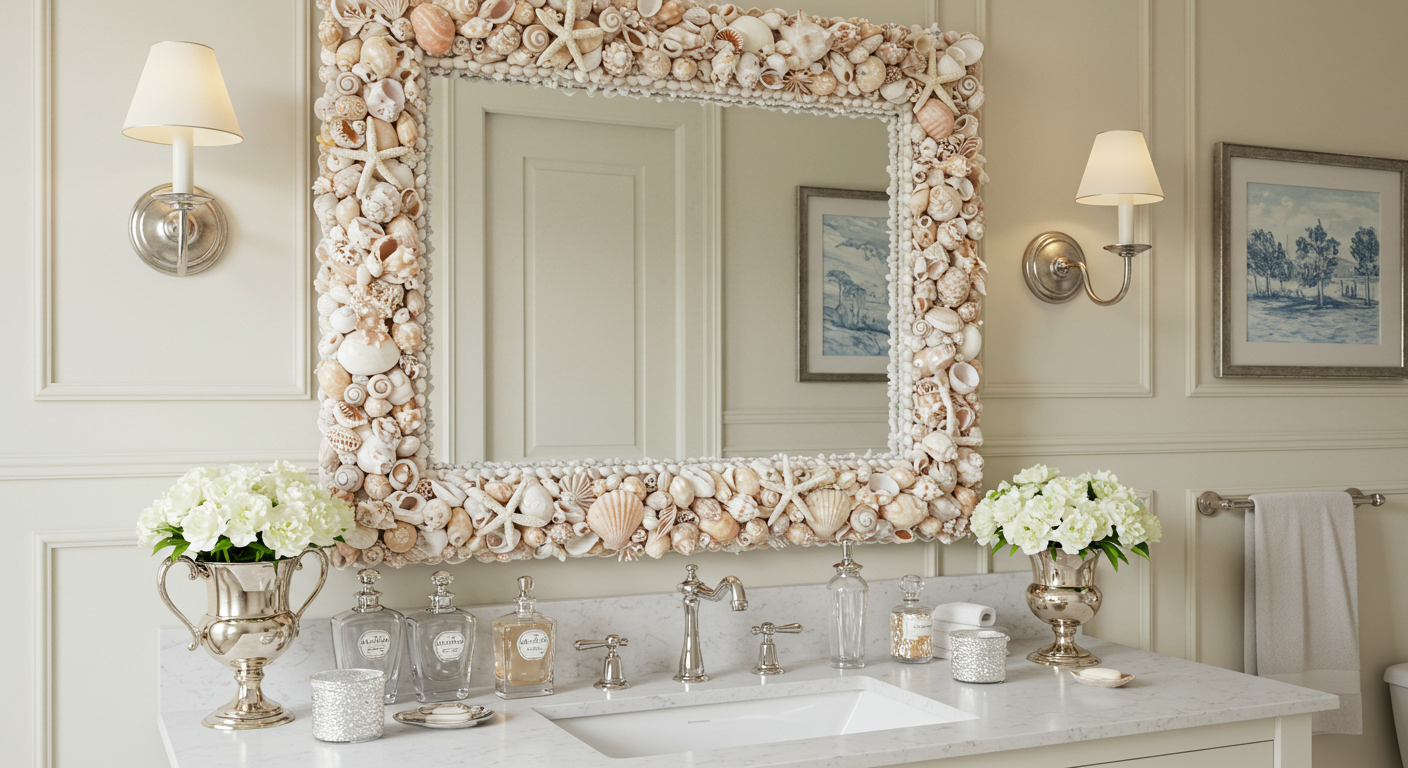 I'd recommend looking into some shell planters, a chandelier, or artwork. I also love the ideas of having a shell bathroom mirror, feature wall, or as a table centerpiece.