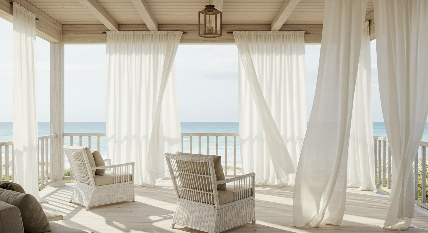 Decorative and functional, outdoor curtains for porches or patios will add elegance and charm to your space.